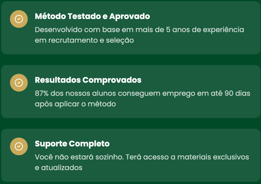 "Trabalho com RH há anos e posso dizer: esse método ensina exatamente o que os recrutadores procuram. Recomendo demais!"